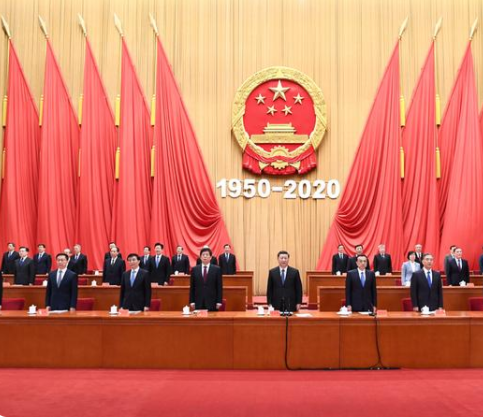 今天,我们在这里隆重集会,纪念中国人民志愿军抗美援朝出国作战70周年。