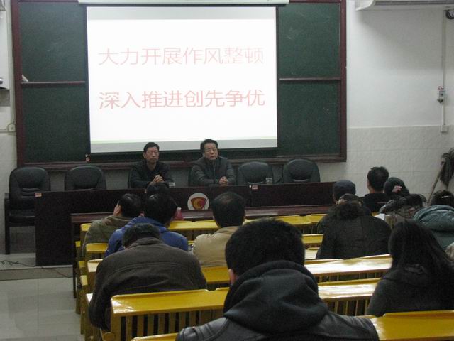 党委书记李晓林在报告中指出:全校干部职工一定要充分认识开展作风大整顿、加强作风建设的重要性和紧迫性,切实把思想统一到市委、市政府、市教育局的会议精神上来,把行动落实到市委、市政府、市教育局各项部署和要求上来,积极响应、踊跃参与作风大整顿活动。要深入开展“三学”(向书本学、向实践学、向师生学)活动,着力解决学风还不够浓和思想观念还不够新的问题;深入开展“三治”(治懒、治庸、治浮)、“三比”(比学习、比作风、比业绩)活动,着力解决纪律还不够严的问题;全面推行“三个一”(一张笑脸、一把椅子、一杯热茶)活动,切实转变工作作风,着力解决服务态度还不够优的问题。将作风整顿与学校当前工作结合起来,与创先争优结合起来,与郴州的经济发展结合起来。