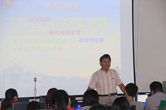 分管开放教育学院校领导黄爱平主席发表讲话,他指出,兴趣是最好的老师,成人教育不同于脱产教育,贵在坚持学习,重在广泛学习,难在终身学习。同学们要坚定学习理念,明确学习动力,要珍惜时间,利用好远程教育的优势,全面提升自己各方面的素质与能力。