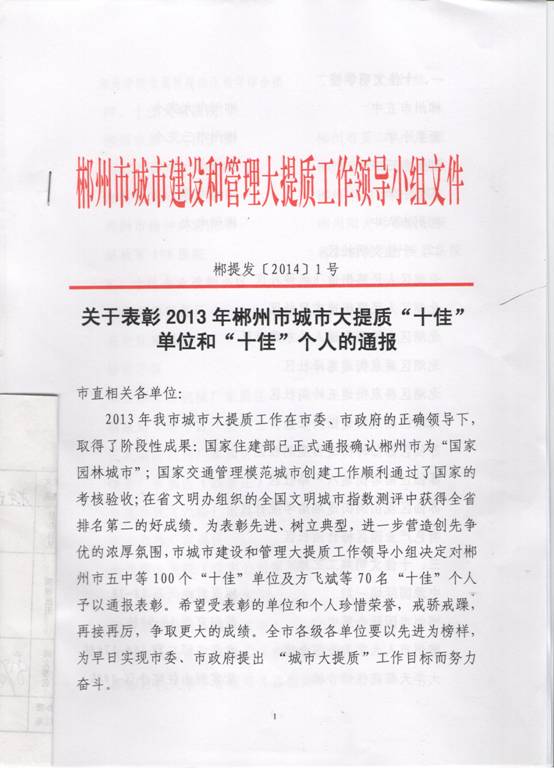 热烈庆祝我校被评为“郴州市城区十佳文明学校”