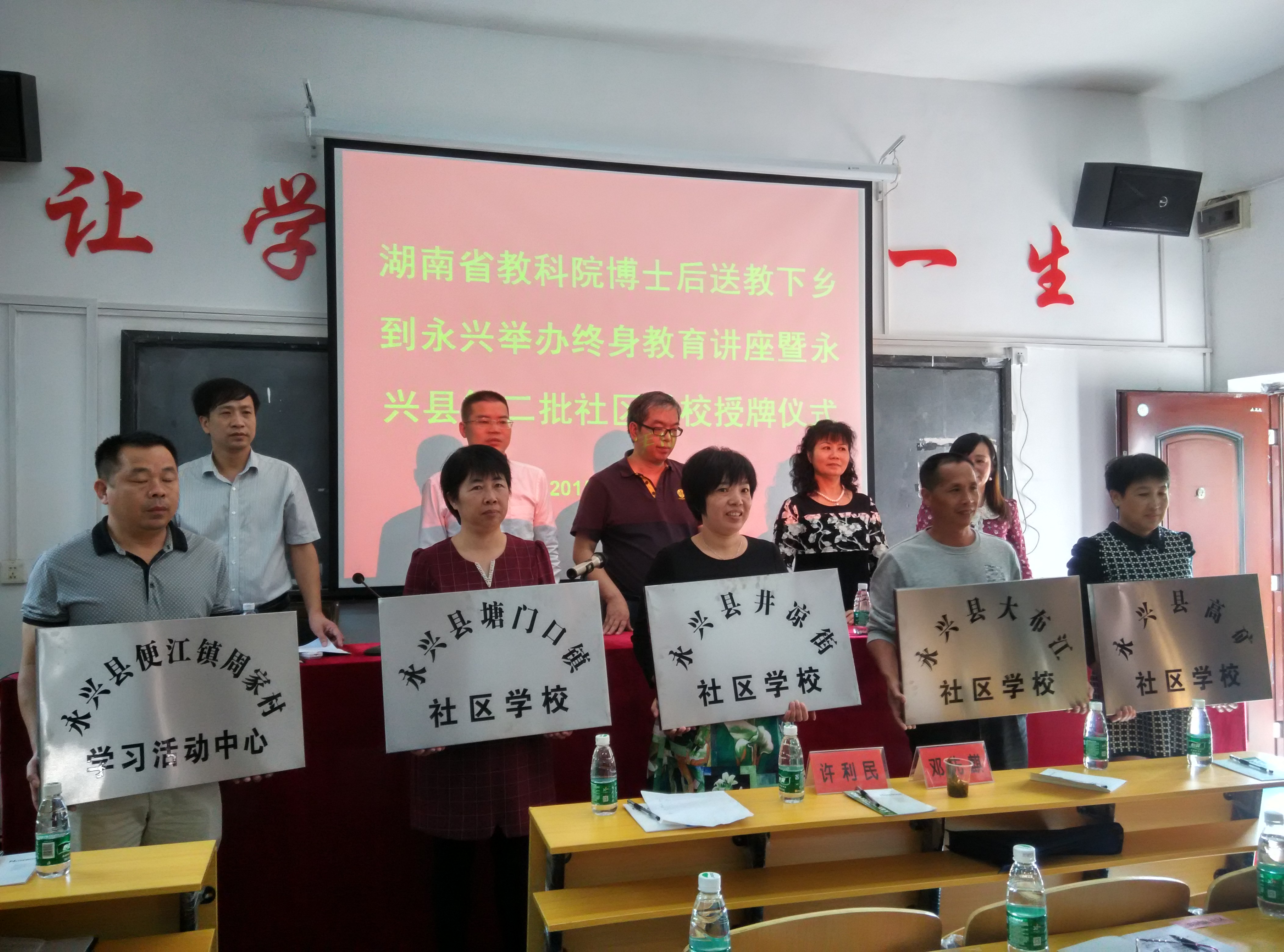 10月25日,永兴县第二批社区学校授牌仪式在永兴电大一楼会议室举行。