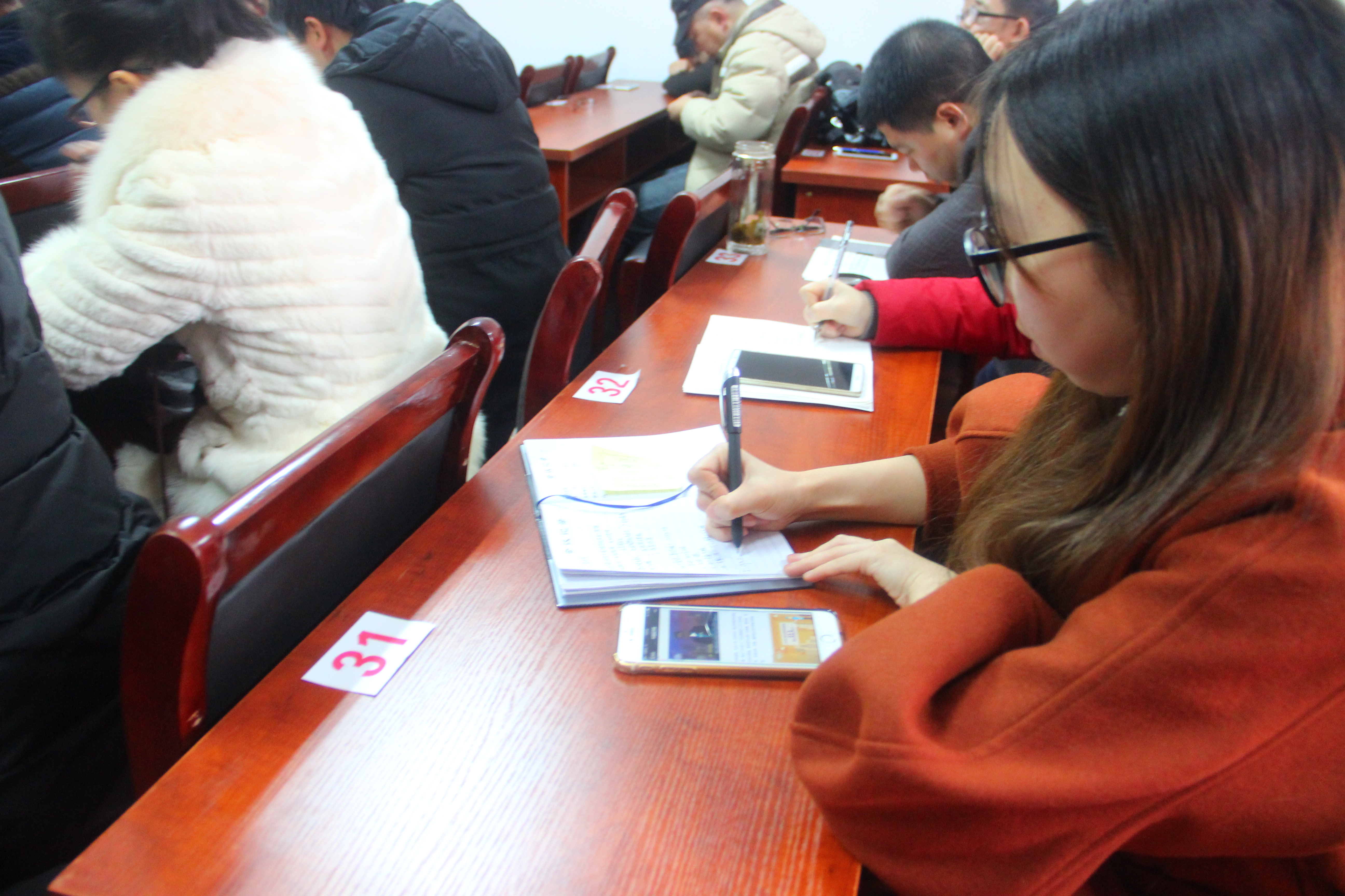 (图为在学习过程中有不少教职工当场就写下了自己的学习心得,振奋人心。)