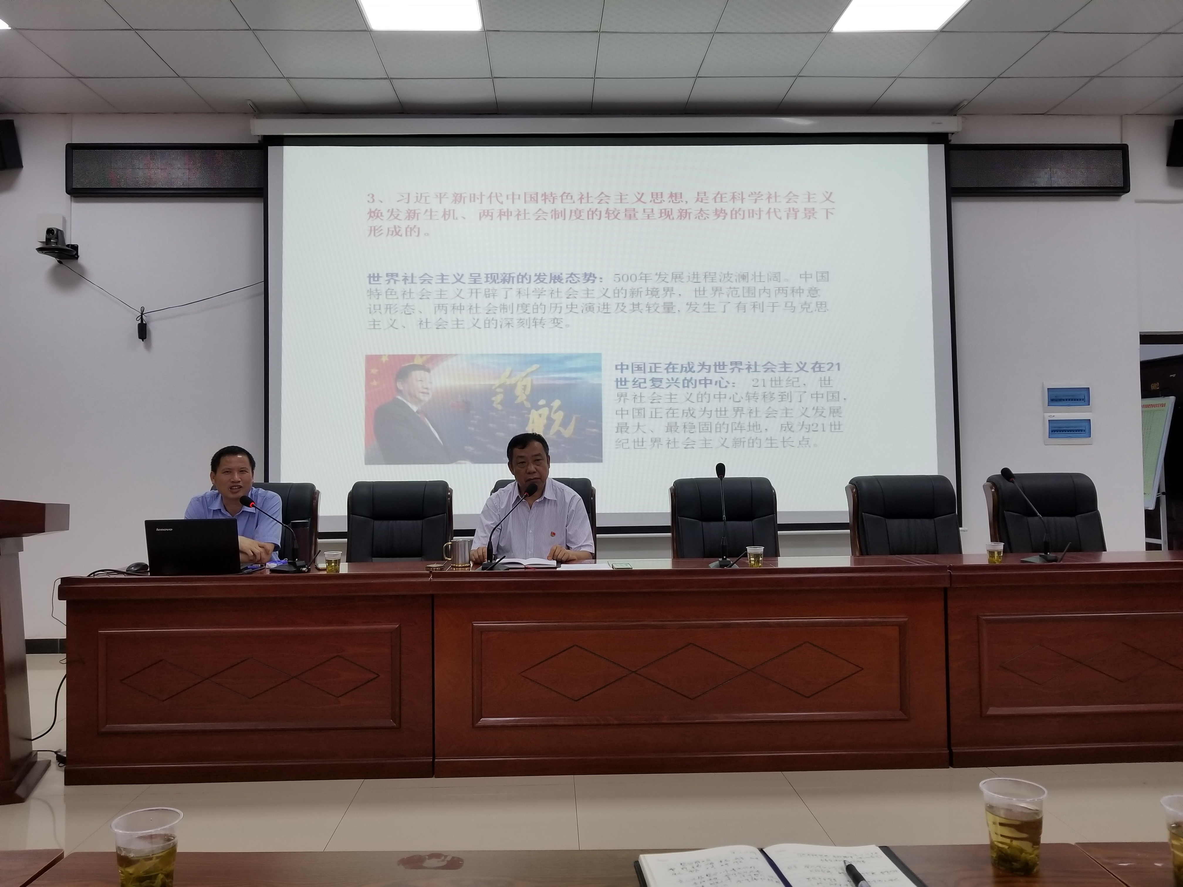 2018年7月13日,郴州电大网投在线-【官网】学习和把握习近平新时代中国特色社会主义思想的专题讲座在六楼会议室如期举办。作为庆祝建党97周年、庆祝“七一”系列活动的重要组成部分,郴州电大特邀郴州市委宣传部副部长胡祥苏教授到校授课,深入解读习近平新时代中国特色社会主义思想,引导全体教职工用新时代新思想武装头脑、指导工作,推动学校各项事业发展。郴州电大全体教职工聆听了讲座。