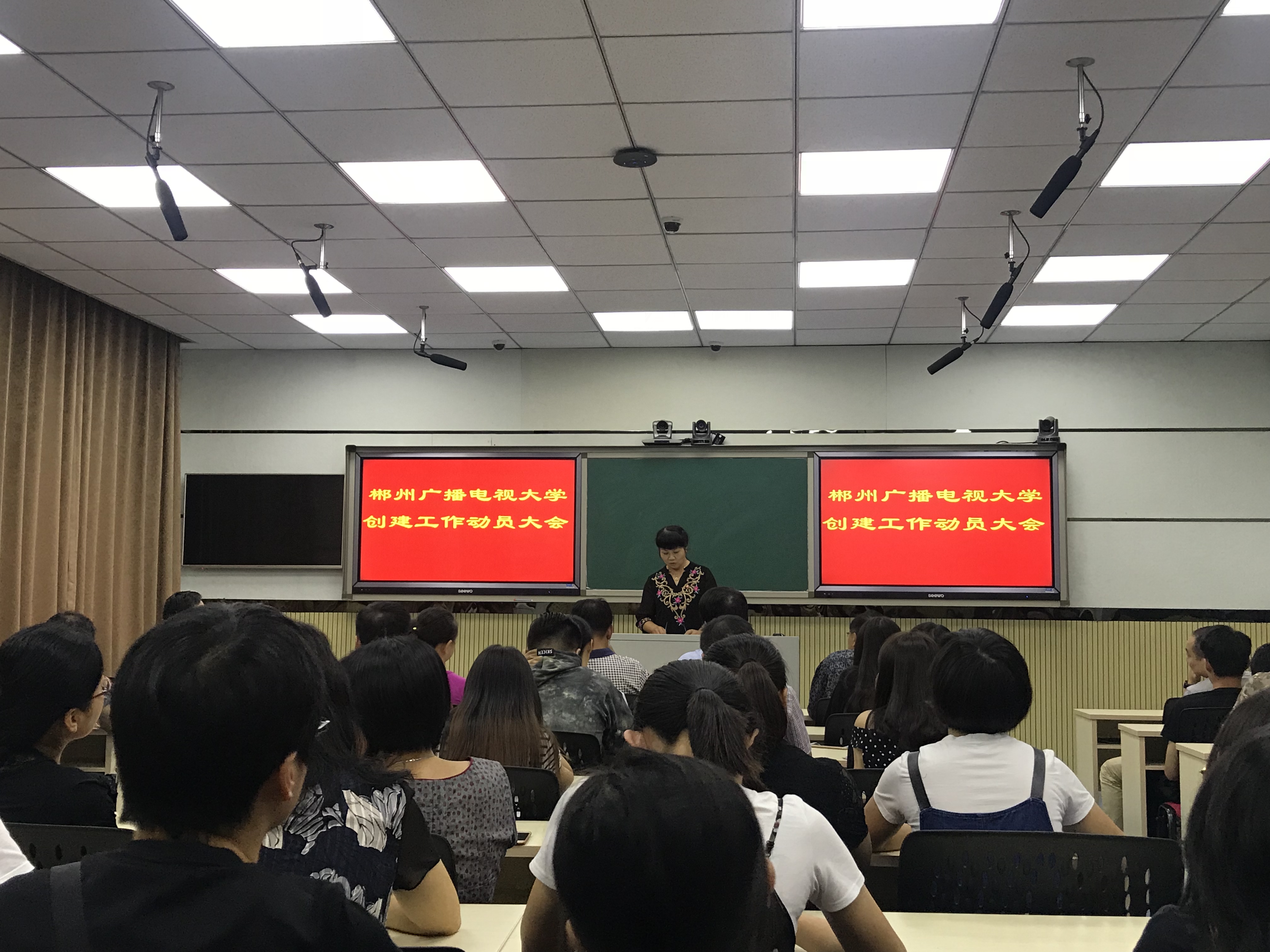 9月10日下午郴州广播电视大学召开全体教职工大会,对创建工作进行再动员再部署。会议由党委书记扶立平主持,党委委员、纪委书记谭肖艳同志首先传达学习了全市创建工作大会内容和市委书记、市人大常委会主任易鹏飞的讲话精神,接着向全体教职工通报了我校第二季度迎检情况,并对我校下半年的创建工作作了具体的要求部署。