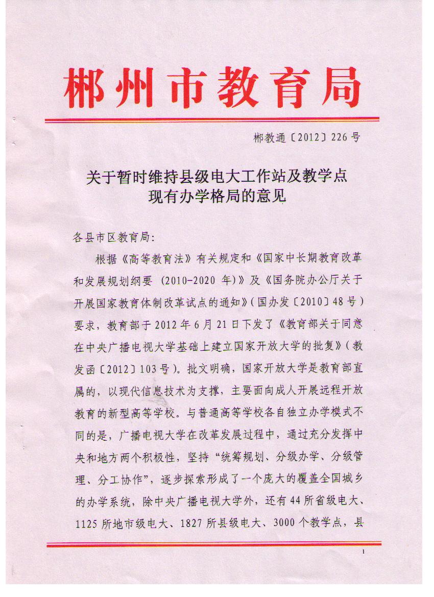 网投在线-【官网】暂时维持县级电大工作站及教学点现有办学格局的意见