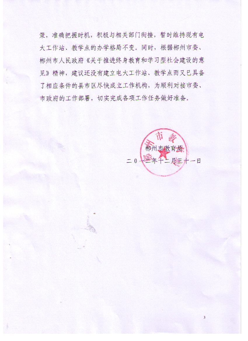 网投在线-【官网】同意郴州广播电视大学加挂“郴州市中小学教师远程教育培训基地”牌子的批复