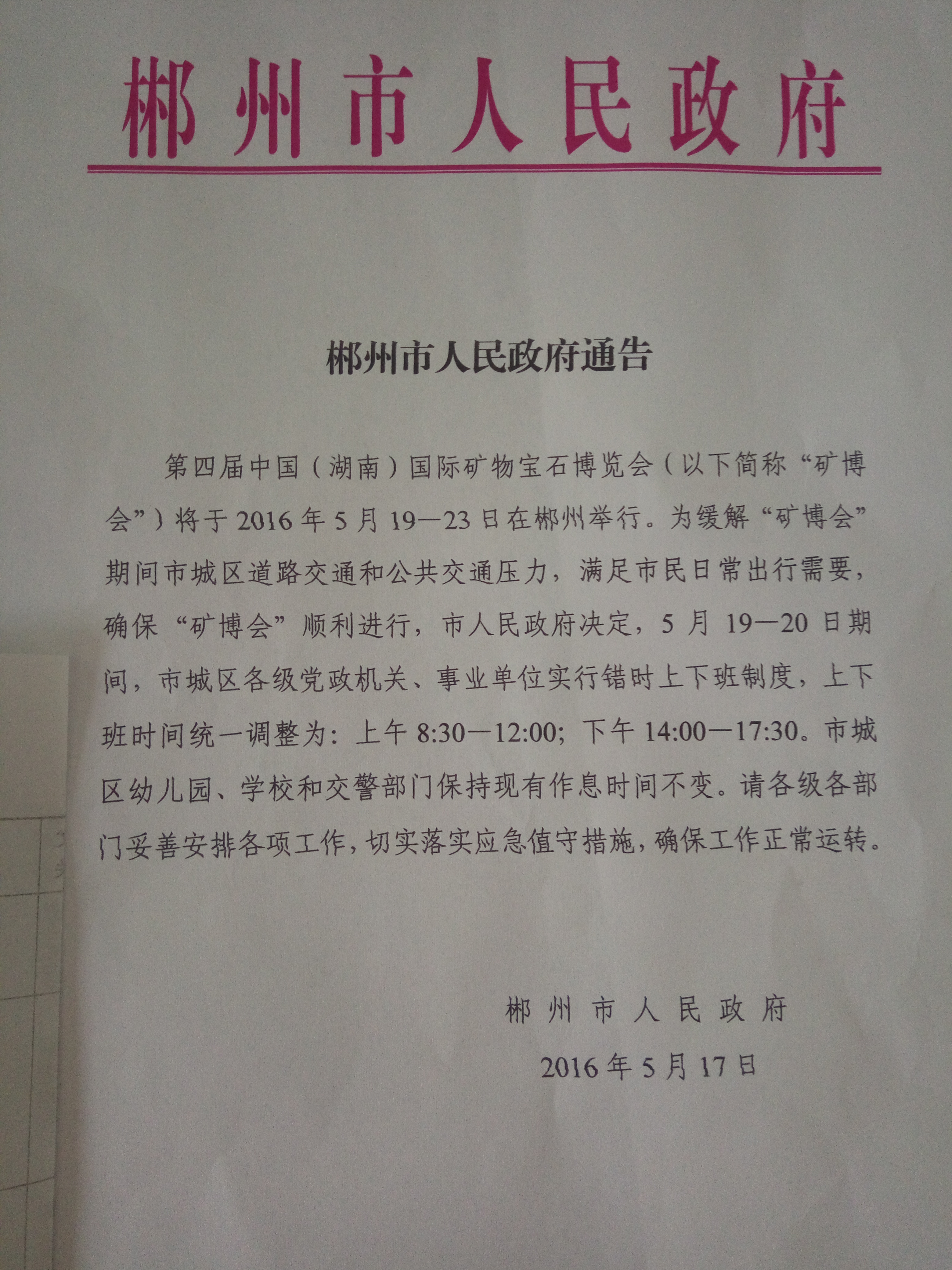 郴州市人民政府通告