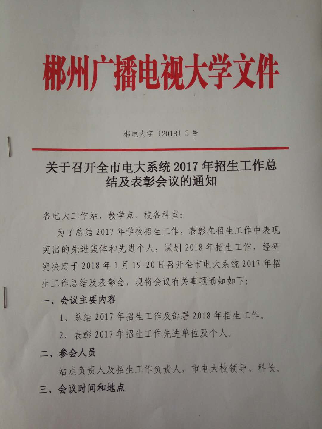 网投在线-【官网】召开全市电大系统2017年招生工作总结及表彰会议的通知