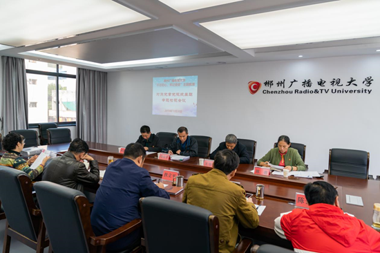 2019年10月30日下午,按照党中央部署和省、市委有关主题教育工作安排,郴州广播电视大学党委“对照党章党规找差距”专题检视会议在北校区六楼会议室召开。会议由党委书记扶立平主持。学校领导班子成员参加。市委第二十三指导组组长邝安平、副组长王书堂,组员何良针、陈蓉到会指导。