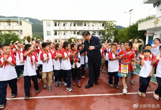 16日下午,正在湖南考察调研的习近平总书记来到郴州市汝城县文明瑶族乡第一片小学,走进四年级教室,同正在上思政课的同学们亲切交流。同学们纷纷向习爷爷分享自己熟悉的长征故事,习近平听了十分高兴,连夸“讲得好”。他说,作为“半条被子的故事”发生地,红色基因要在你们身上得到体现。革命事业要一代一代传下去,中华民族伟大复兴将在今天的青少年一代手中实现。他把同学们比作“小树苗”,将来会长成中华民族的参天大树,希望同学们好好学习、天天向上,努力成长为社会主义建设者和接班人。(文字记者张晓松、朱基钗摄影记者李学仁、谢环驰)