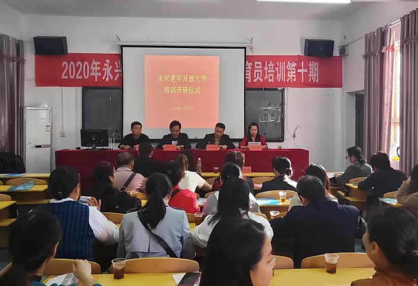 25日,在永兴社区学院举办了社区老年开放学校校长、专业教师及管理人员培训会。县教育局黄建华副局长进行开班动员,总结前一段时间办学的情况,同时指出存在的一些问题和不足。省电大社会教育学院副院长朱新洲介绍了社区老年教育的重要性、省电大举办线上线下老年教育的具体做法和下一步的具体设想。刘勇老师介绍湖南老干部(老年)开放大学学习平台,指导参培人员具体操作。