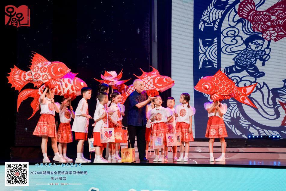 总开幕式上宣读了2024年全省“百姓学习之星”和“终身学习品牌项目”的表彰通知,并为全国新时代“百姓学习之星”“终身学习品牌项目”获奖者颁奖。本次获奖的个人和品牌项目来自全省各市州,展现了湖南人民对知识孜孜以求的精神风貌,展示了“秦氏剪纸”等非遗项目的美轮美奂。由此可见湖南省建设全民终身学习的成效与特色。